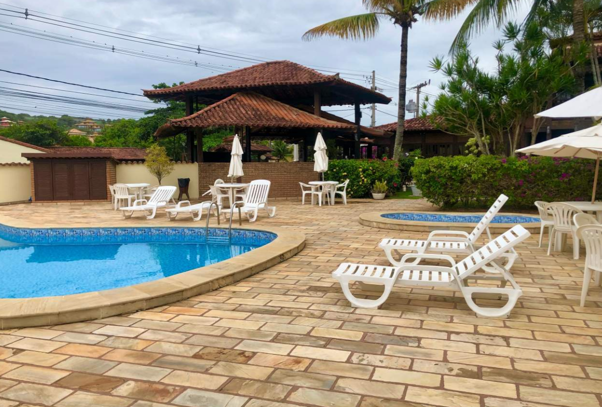 Casa situada dentro de um dos melhores condomínios de Geriba. Possui 04 suítes com cama de casal e 04 colchões com densidade 33, 1 lavabo, banheiro que atende a churrasqueira ,sala de 4 ambientes, cozinha bem equipada e varanda. TV em 3 suítes e living.